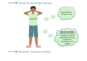 Ressources pour aider ses proches Ici nous vous proposons de nombreuses ressources si un de vos proches (adulte) est sujet à l’anxiété, au stress ou à un mal-être un peu plus général et que vous souhaitez le soutenir. Toutefois, il est à noter que votre seul soutien ne peux pas toujours suffire, n’hésitez pas à parler à votre proche de Home Stress Home afin qu’il réalise une évaluation et ait accès aux ressources pour prendre soin de lui, comme des exercices gratuits de méditation et de relaxation. Il se peut aussi que notre site ne soit pas suffisant face au mal-être de votre proche, dans ce cas l’aide d’un professionnel pourrait peut-être s’avérer utile Sommaire : Ressources diverses Littérature et jeux Outils Fiches conseils Les ressources diverses Chez Home Stress Home, nous aimons la vidéo de « C’est Pas Sorcier » sur les Émotions, et nous la conseillons à tous nos visiteurs : Nous vous conseillons également cette vidéo, plus « sérieuse » sur les troubles anxieux. Littérature et jeux Les conseils issus de notre site s’inspirent des Thérapies Cognitives comportementales, ou TCC. Comme nous l’avons répété plusieurs fois, si nos conseils ne suffisent pas, il peut être utile de consulter un professionnel. Nous vous recommandons également ce livre, disponible en bibliothèque, qui est un bon outil en support à un travail thérapeutique. Résumé Emotions mode d’emploi est un livre écrit par Christel Petitcolin et paru en 2017. Il s’agit ici bien de discuter du fait de ne pas combattre et contrôler les émotions, ce qui est décrit comme étant néfaste, mais bien au contraire, les accueillir tout en accordant de l’importance à chacune. Ces dernières ont un message à nous livrer et il est primordial d’y mettre du sens. Afin de ne pas créer de conséquences très négatives sur notre personnalité et notre humeur, il est donc normal de vivre ses émotions à fond. C’est pourquoi cet ouvrage nous livre multiples astuces et explications pour atteindre cet objectif Pour aller plus loin Nous retrouvons les 3 tomes de la gestion des émotions et le mode d’emploi, écrits par Art -Mella, qui suivent plus ou moins la même logique que ce livre Où le trouver ? Amazon Fnac Résumé Psychologie de la peur : craintes, angoisses et phobies est un livre parut en 2005 et écrit par Christophe André. Ce livre vous fait comprendre pourquoi les mécanismes de nos peurs peuvent parfois se dérégler et comment notre cerveau émotionnel prend alors le pouvoir. Au travers de récits étonnants, parfois bouleversants, l’auteur vous entraîne avec lui dans ses séances de thérapie. À partir de son expérience de médecin et de psychothérapeute, il vous explique comment guérir durablement de vos peurs. Où le trouver ? Amazon Fnac Decitre Résumé Vous pouvez utiliser soit seulement les cartes des émotions, soit les cartes des besoins, ou les utiliser ensemble. Le premier jeu de carte permet l’identification des émotions chez les enfants, adolescents et jeunes adultes, et le deuxième l’identification des besoins véhiculés par ces émotions. Les utiliser ensemble est utile pour mieux comprendre ce que génèrent les émotions en nous Pour quel âge ? A partir de 7 ans Où le trouver ? Comitys Informations supplémentaires Bien que le site indique que ces jeux de cartes peuvent être utilisés dès la maternelle, le vocabulaire est sûrement un peu trop soutenu pour de jeunes enfants. Pour les enfants de 7 à 11 ans il faudra peut-être expliquer certaines notions Les outils La roue des émotions pour adultes Comment s’en servir ? L’adolescent ou le jeune adulte peut choisir un sentiment, une émotion, ainsi qu’un besoin qu’il ressent en tournant les roues correspondantes. Quand l’utiliser ? Il peut être utilisé avec votre adolescent ou un jeune adulte ponctuellement, pour faire le point face à un malaise. Vous pouvez aussi l’utiliser régulièrement pour faciliter l’apprentissage de l’identification des émotions et besoins. Où se le procurer ? Hop Toys Comment l’adapter ? Vous pouvez utiliser aussi l’outil « donner des mots aux maux » qui permet un travail similaire et ne nécessite pas d’achat supplémentaire. Fiches conseils Les émotions L’émotion est une réponse cognitive, affective et somatique à la survenue d’un évènement (qui peut être interne, comme une pensée, une douleur). Elle inclut : Une dimension somatique : la réponse corporelle (palpitations, nausées, tremblements) Une tendance à l’action : le comportement que l’émotion nous conduit à mettre en place ; Un sentiment affectif : le label émotionnel que nous attribuons à notre ressenti ; Elle comporte aussi une dimension expressive, qui peut être faciale ou vocale. Les émotions sont fondamentales pour notre survie. L’exemple le plus parlant est celui de la peur : c’est la peur qui a empêché nos ancêtres de tomber dans des ravins, qui leur a permis de se cacher des animaux sauvages et de leurs ennemis pour prospérer jusqu’à notre ère. Les émotions sont aussi des réponses à nos besoins : quand un besoin est satisfait, nous éprouvons une émotion positive ; si par contre le besoin est insatisfait, nous éprouvons une émotion négative. L’anxiété qu’est-ce que c’est ? À chaque moment de sa vie, une personne est susceptible de ressentir des sentiments de peur, d’angoisse, et d’anxiété. Nous avons souvent tendance à croire que ces termes font référence à des concepts identiques. Cependant, en psychologie, il a été découvert que ces termes font en fait référence à des états différents. La peur est une réaction vitale pour la survie de l’être humain, qui est mise en place par notre cerveau pour nous protéger. En effet, quand notre cerveau croit qu’une situation (réelle ou imaginée) menace notre vie ou notre sécurité, il sonne l’alarme et ordonne à notre corps de